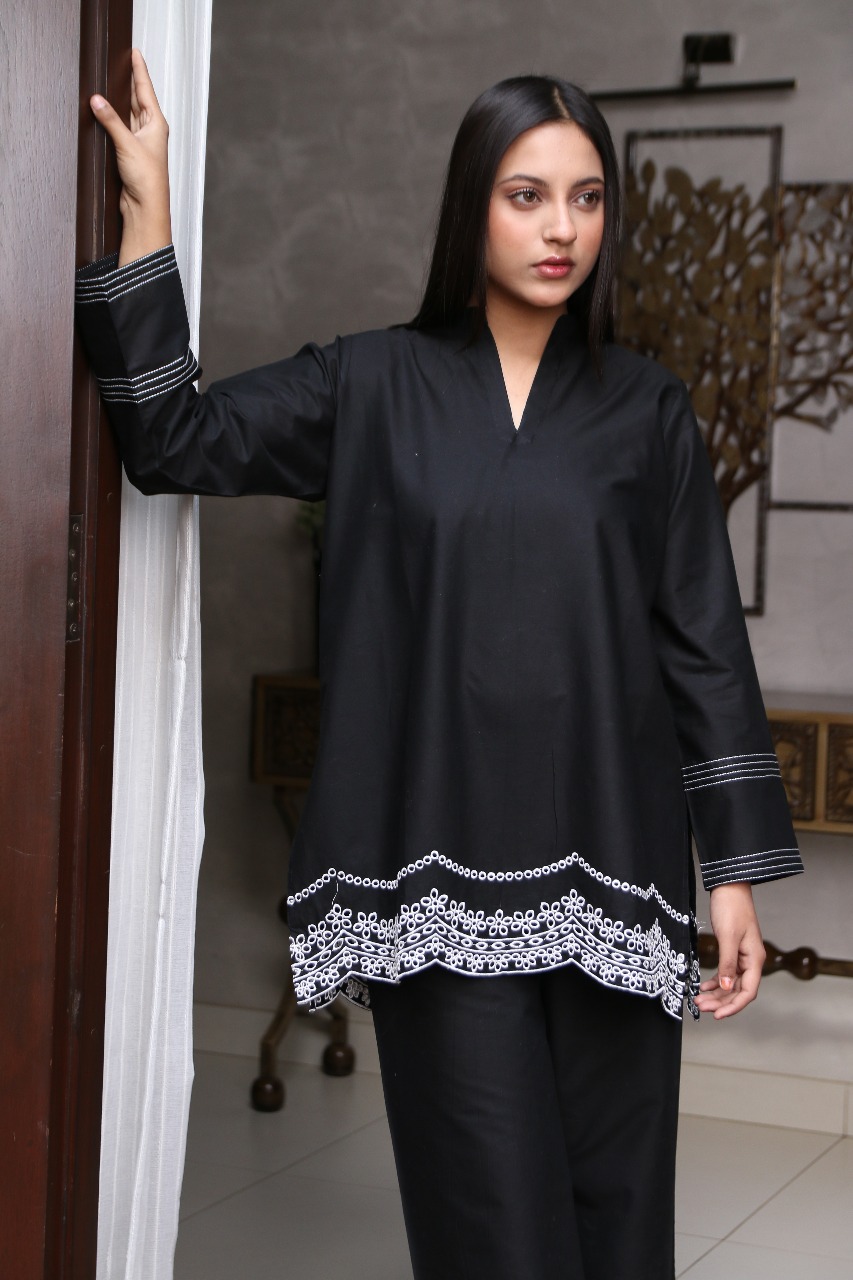 Featuring a relaxed fit co-ord set with embroidered details on hem and izhar. The soft and breathable cotton fabric makes it the perfect choice for daily wear.